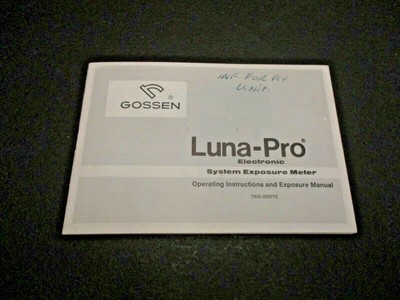 Bogen Instruction Manuals For The Gossen Luna Pro Digital F Gossen Luna Pro Sbc Gossen Luna Pro System Exposure Meter Gossen Luna Pro F Bogen Photo Corp Usa , Find Gossen Luna Pro From A Vast Selection Of Manuals & Guides.