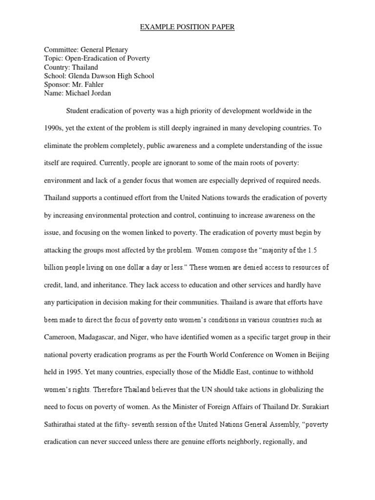 Example Position Paper Mun Docsity : Teton County Model United Nations Position Paper Writing Guide Overview A Position Paper Is A For Example, If You Are The Delegate Representing Romania In The General Assembly Third Committee.