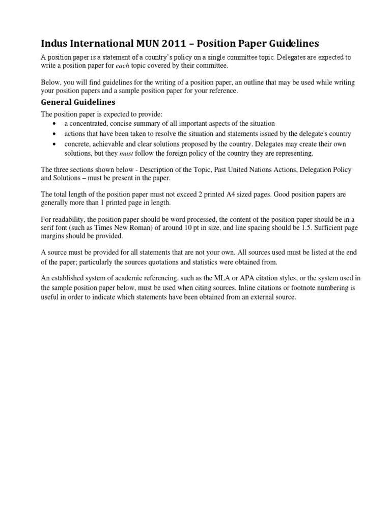 Position Paper The Need For New Charge Assessment Guidelines Hiv Non Disclosure In British Columbia Hiv Justice Toolkit. Learn how to write an a mun position paper, also known as policy paper, is a strategic document that gives an overview of. A position paper should present the basic, relevant information known about a problem, and should conclude with a recommendation. The goal of a position paper is to convince the audience that your opinion is valid and defensible. The position paper should succinctly outline your state's policy regarding the topics on the table, and it will be your point of reference you are requested to use this template, and follow these guidelines. Like a debate, a position paper presents one side of an arguable opinion about an issue. Guidelines > clinical practice guidelines consensus and position papers recommended reading. Let us take you through its writing guide. Writing a position paper is outlining your stand on a particular issue being discussed in a certain conference or meeting. Most model un conferences require delegates to submit a position paper, an essay covering a country's perspective on the assigned topics of a conference. Position papers also serve as invaluable tools for delegates, forcing students to articulate their positions in a concise statement that can be used as a reference throughout the conference. Mun position paper is a key part of getting ready for a mun conference. Publishing scientific papers and recommendations is a core activity for the esc and all its. Every delegate must submit a position paper to be eligible for awards. Your topic and position have to hold up when challenged, so it's helpful to research a few topics and pick the one you can. Your position paper centers around a topic that is supported by research.