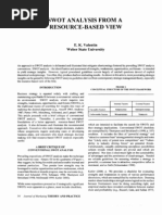Swot Analysis From A Resource Based View - Foundations, Ferment, And Future, Sixth Edition.